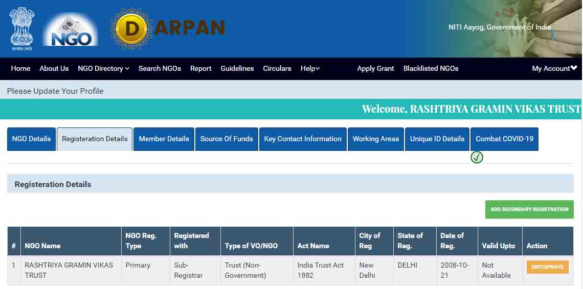 ![]() ![]() The NITI Aayog, National Institution for Transforming India, is a policy think tank of the Government of India, established with the aim to achieve Sustainable Development Goals and to enhance cooperative federalism by fostering the involvement of State Governments of India in the economic policy-making process using a bottom-up approach and Awarded a Unique ID to Rashtriya Gramin Vikas Trust. ![]() |
